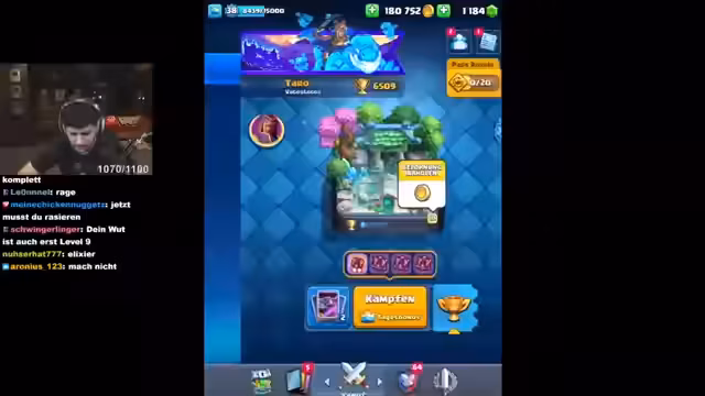 04:10:21Der Spieler erfährt eine beeindruckende Siegesserie und findet seine Champions-Truhe vor. Er wechselt zwischen verschiedenen Karten wie Magic, Mega Night und Kobold-Riesen, um seine Gegner unter Druck zu setzen. Der Streamer zeigt Begeisterung über die erhaltenen Karten und betont das Potenzial seines Decks, insbesondere mit den Evo-Karten, die ihm erhebliche Vorteile im Spiel verleihen.
