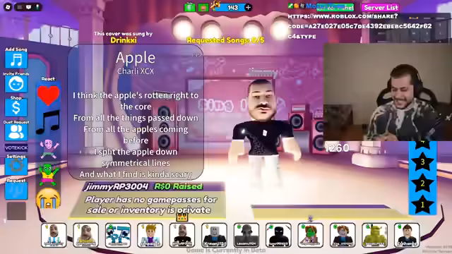00:05:45Unmittelbar nach der Einleitung wird das Spiel Roblox Karaoke gestartet, wobei der Streamer von vornherein nur mit Zuschauern spielen möchte. Nachdem ein privater Server mit dem Namen Hamut Laku erstellt und gekauft wurde, stoßen technische Schwierigkeiten auf. Die Server-Kapazität ist stark eingeschränkt, was zu einem ständigen Hinzukommen und Rausschmeißen von Spielern führt. Zudem ist die Mikrofon-Qualität eine große Herausforderung, da der Streamer viele Teilnehmer nicht hört.