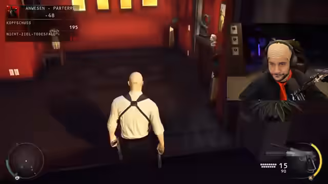 00:36:46Nachdem Hamed seine ersten beiden Ziele in Hitman eliminiert und deren Leichen versteckt hat, setzt er seine Mission fort. Er nutzt verschiedene Verkleidungen, um unbemerkt in neue Bereiche vorzudringen, und erprobt Waffen wie einen Messerwirbel. Das Spiel wird für ihn zu einer ständigen Herausforderung, da er oft zufällig entdeckt wird und dabei wertvolle Punkte verliert, was ihm Frust bereitet, aber auch zu humorvollen Reaktionen im Chat führt.