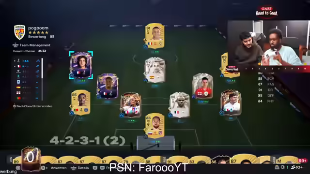 03:30:16Es wird über die Leather-Qualifikation in FC gesprochen, wobei erwähnt wird, dass 256 Spieler sich qualifizieren und der Streamer aktuell unter den Top 20 ist. Faro spielt auch Leather in Division 5. Diskussionen über den Wettkampfmodus und den schnellen Erwerb von Inhalten für diesen Modus werden geführt, wobei der Nutzen jedoch in Frage gestellt wird. Der Streamer berichtet von einem Auscash und dass die Gruppe direkt nach der Ankunft wieder aktiv über FC-Käufe und OP-Spieler diskutiert hat. Es wird über den Spieler Matuidi gesprochen, der positiv mit Viera verglichen wird, und über Iniesta, der als Player-Model gelobt wird. Der Streamer öffnet ein SPC Prime Gold Profis Pack.