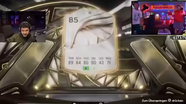 00:37:45Es wird ein Pack-Battle vereinbart, bei dem es um Wünsche geht: Der Streamer möchte eine Polar Express Zugfahrt mit seiner Familie, während die Mutter sich ein Parfüm wünscht. Zuerst werden normale Packs geöffnet, wobei die Mutter mit einem 82er Mitoma startet. Der Streamer zieht eine Frau aus der Frauenliga, Flemming. Die Mutter führt zunächst, bis der Streamer Jonathan David zieht. Die Mutter zieht Simakhan, den der Streamer persönlich kennt, aber der aufgrund seiner Liga nicht so wertvoll ist. Der Streamer zieht Otamendi, den die Mutter nicht kennt. Am Ende gewinnt der Streamer die erste Runde mit David. Anschließend werden Promopacks geöffnet, wobei die Mutter mit Rimpong einen Volltreffer landet, der fast 40.000 wert ist. Der Streamer zieht zwar einen Walkout mit einer Frau, Jade, aber ihr Tempo ist zu langsam, sodass sie nicht so wertvoll ist. Die Mutter zieht Undaff, ihren Lieblingsfußballspieler, der aber leider auch nicht so viel wert ist. Der Streamer zieht Trossard, der ebenfalls nichts wert ist. Am Ende gewinnt die Mutter die zweite Runde mit Rimpong.