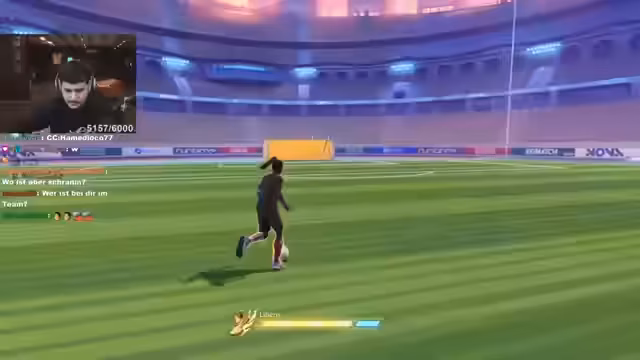 02:30:19Während des Spiels kommt es zu mehreren entscheidenden Szenen, bei denen er den Ball knapp verfehlt oder der Torwart parieren kann. Der Streamer versucht den Ball durch Lupfen zu fangen, was aber sehr schwer ist. In einem Moment muss er stark den Ball abwehren, der knapp am Tor vorbeigeht. Es wird deutlich, wie eng und knapp das Spiel ist und wie wichtig jede Abwehraktion ist.