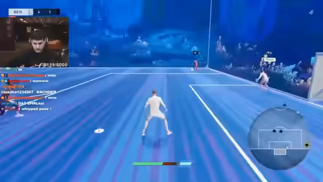 03:11:59Das Spiel steht unentschieden und der Streamer fordert sein Team auf, ruhig zu bleiben und strategisch zu agieren. Er bittet Willi nach vorne zu gehen, damit er als Torwart die Abdeckung hat. Es werden Flanken versucht und das Team sucht nach einer Lücke. Die Spannung steigt, da es fast zum Tor kommt, aber der Ball noch geblockt wird.