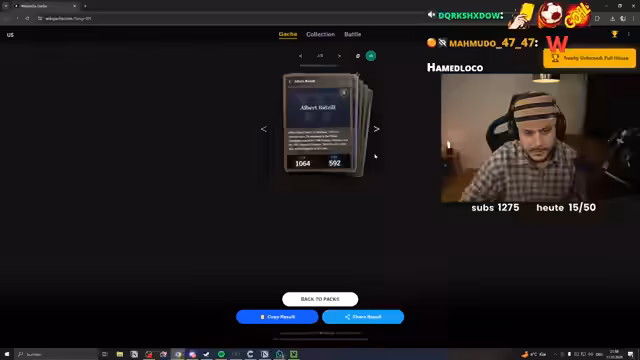 00:03:32Der Stream beginnt mit traditionellen Begrüßungen und einem Überblick über den heutigen Inhalt. Hamedloco erwähnt, dass die Stream-Aktivitäten direkt im Titel zu finden sind und kündigt ein Pack-Opening an, das auf einer Website stattfindet, auf der man Wikipedia-Artikel sammeln kann. Die Streamer öffnen eine Reihe von zufälligen Packs und kommentieren die gezogenen Einträge. Einige Pack-Öffnungen enthalten bemerkenswerte Einträge wie einen Song, eine amerikanische Schauspielerin und den deutschen General Gottfried Fröhlich aus dem Zweiten Weltkrieg. Der Streamer drückt Frustration über die niedrigen Werte vieler Karten aus und bittet den Chat um Unterstützung, um endlich ein Goldpack zu erhalten.