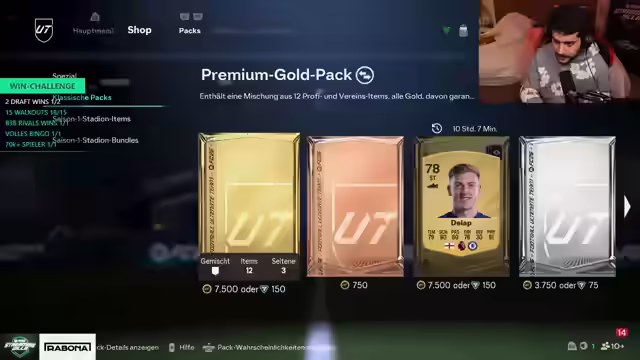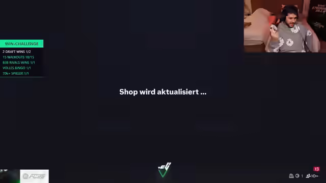 09:23:46Es werden Packs geöffnet, darunter 2x77 Plus Packs, und es wird über den Wert von Silber- und Goldspielern im Spiel diskutiert. Der Streamer erwähnt, dass er noch eine Stunde aus der Streaming-Villa streamen darf. Es wird über die Winchallenge gesprochen und die Belohnungen, wie z.B. eine Evolution, werden gezeigt. Der Streamer kündigt an, dass er eine Evolution vor Abzugang erhält. Er probiert ein Turnier aus. Es wird überlegt, ob man mit einem bestimmten Team spielen muss. Es wird überlegt, ob man die Coins von Iniesta zurückbekommen hat. Es wird überlegt, wie viel die Windchallenge gekostet hat. Es wird ein Fake-Leak gemacht. Es wird überlegt, ein Gerücht zu verbreiten. Es wird überlegt, in Spieler zu investieren. Es wird überlegt, ob man alles verkaufen soll. Es wird über das Wetter gesprochen. Es wird überlegt, was man anziehen soll. Es wird überlegt, was die Meinung zu Libanesen ist. Es wird überlegt, ob man noch etwas im Raum mit einem Verein ist. Es wird überlegt, was bei Crunchyroll reingucken muss. Es wird überlegt, wie ein Stream funktioniert. Es wird überlegt, wie viel Geld OBS machen könnte. Es wird überlegt, was mit dem Kiefer ist. Es wird überlegt, ob man die Streaming-Villa wiederholen soll. Es wird überlegt, welche Projekte anstehen. Es wird überlegt, ob man aus Deutschland auswandern soll. Es wird überlegt, wie viele Stunden gestreamt wurde. Es wird überlegt, wo man in Deutschland ist.
