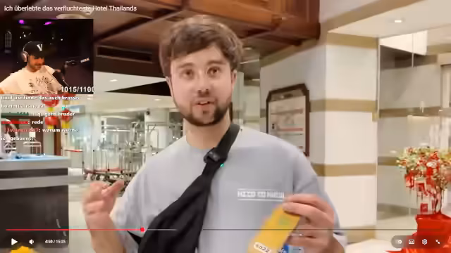 03:39:08Der Streamer berichtet über einen Aufenthalt im Iran, wo er zusammen mit Markus für ein Zapp-Projekt war. Seine Eltern haben ihn sogar unterstützt, zwei länger zu bleiben. Anschließend wechseln sie das Hotel, weil das erste als unheimlich und voller Sicherheitskräfte empfunden wurde. Beim Rundgang durch das neue Hotelort bemerken sie ungewöhnliche Dinge, darunter einen Stripclub. Eine störende Geräuschkulisse durch Fahrstühle und hellhörige Wände wird thematisiert, die nachts für Unruhe sorgt. Der Streamer äußert, dass er durch das Ansehen des authentischen Materials dem YouTuber mehr Vertrauen entgegenbringt und dessen Echtheit bestätigt sieht.