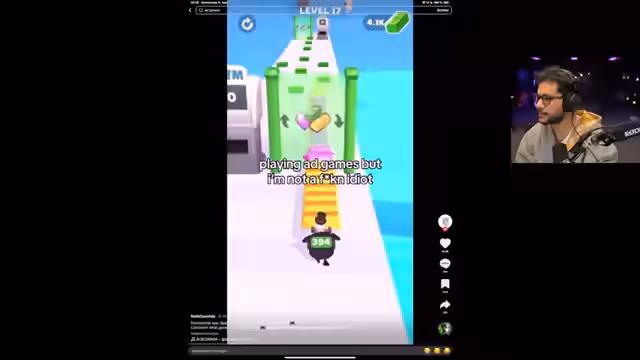 02:34:11Der Streamer startet ein Experiment, bei dem er einen neuen TikTok-Account erstellt und lange scrollt, bis eine Werbung erscheint. Wenn die Werbung von einem Spiel ist, lädt er es herunter. Er erklärt, dass er den Algorithmus manipulieren will, um mehr Handyspielwerbungen zu erhalten. Nachdem er erfolglos verschiedene TikTok-Videos betrachtet hat, gibt er Handyspiele in die Suche ein, um eine Werbung zu finden. Das Experiment endet damit, dass er beschließt, es erneut zu versuchen und darauf hofft, bald eine Werbung für ein Handygame zu sehen.