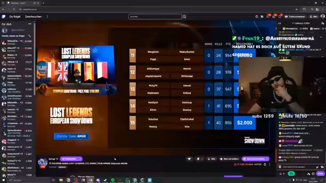02:56:27Nach Abschluss aller Runden wird die Gesamtleistung des Teams reflektiert. Trotz des Rückschlags in der Special Round bewerten die Streamer ihre Auftritte im Turnier überwiegend positiv. Die gezeigten Top-15- und Top-6-Platzierungen werden als 'geistgestörte Performance' und 'geiles Comeback' bezeichnet. Der Streamer drückt seine Stolz über das Team und die erreichte Auszeichnung aus. Der Stream endet mit einer betonten nationalen Gesinnung, die den Wunsch nach einem deutschen Sieg unterstreicht, während die Abschlussevents und die Platzierung im Turnier final besprochen werden.