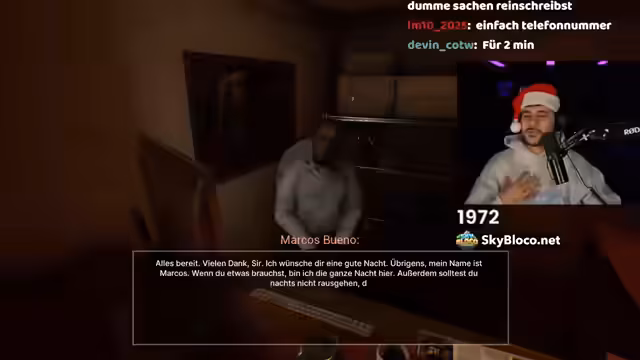 02:46:48Nach den turbulenten Ereignissen im Minecraft-Server wechselt der Stream zu einem neuen, thematisch passenden Spiel: 'Detective Rainy Night'. Der Streamer schlüpft in die Rolle des Detektivs Iker Carmona, der in einem abgelegenen Motel nach einer Reihe von Verschwindenfällen ermitteln soll. Die Stimmung ist düster und gespenstisch, geprägt von Nebel, Isolation und mysteriösen Gästen. Der Streamer interagiert mit NPCs, sammelt Informationen und versucht, die rätselhaften Vorkommnisse aufzuklären, während er gleichzeitig mit den Realitätsproblemen eines eingeweichten Burgers kämpft.