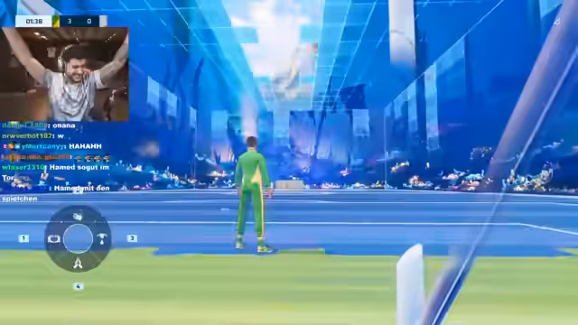 03:26:16Nach dem Verlust des ersten Spiels im Best-of-Three-Halbfinale wird das Match äußerst kämpferisch und nervös geführt. Der Streamer ist als Torwart im Einsatz und fordert seine Mitspieler aggressiv auf, defensiv zu agieren und schnelle Entscheidungen zu treffen. Das Spiel von Team und Gegnern wirkt teilweise schlampig und von Zeitproblemen geprägt, was zu verpassten Chancen und schnellen Ballverlusten führt, was den Frust im Chat deutlich werden lässt. Die Anstrengungen führen dazu, dass der Streamer seine körperlichen Grenzen erreicht und mehrfach über fehlende Ausdauer und Tempo klagt.