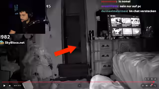 05:12:54Es folgt eine Einladung zu Fortnite-Spielen unter der Bedingung, den Kim Kardashian-Skin zu besitzen. Nach Bestätigung wird Minecraft beendet. Der Streamer kündigt Reaktionen auf Horrorvideos an und empfiehlt Snacks. Dies markiert den Übergang vom Gaming zum React-Format, wobei ein Gruselvideo ausgewählt wird, das angeblich五个 Schlafzimmer-Videos zeigt.