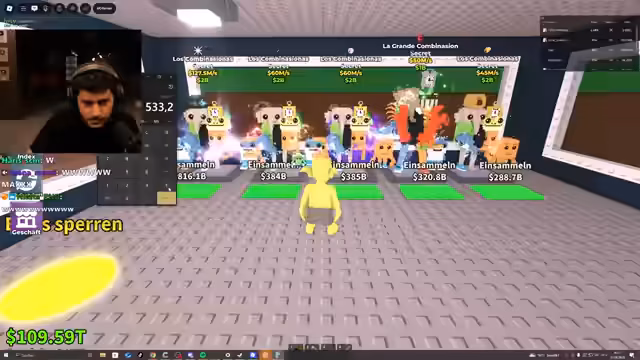 00:38:01Der Streamer erwähnt die hohe aktuelle Spielerzahl des Spiels, die auf 20 Millionen 'CCU' gleichzeitig geschätzt wird. Es kündigt sich ein neues Event an, das mit 'Roblox gespendet hat'. Es wird auch eine potenzielle Zusammenarbeit mit 'Stil Brain' erwähnt. Der Streamer ist offen für Input der Community, ob er bestimmte Gegenstände behalten oder verkaufen soll, und bittet darum, dass Zuschauer an anderen Spielern teilnehmen und sammeln.