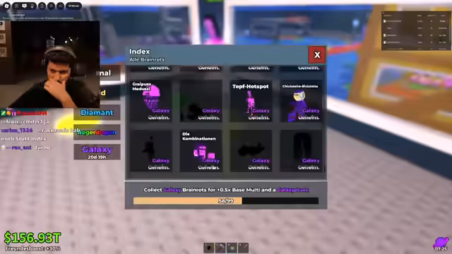 02:22:36Im weiteren Verlauf des Streams werden verschiedene Secret Lucky Blocks geöffnet, die meist wertlose, aber seltene Items wie Müll-Secrets freigeben. Trotz der Enttäuschung über die Ergebnisse erhalten sie große Spenden von der Community, insbesondere 20 Millionen von Olaf. Diese finanzielle Unterstützung ist entscheidend, um weiter seltene Items kaufen oder tauschen zu können und dem Ziel eines vollständigen Galaxy-Index näherzukommen.