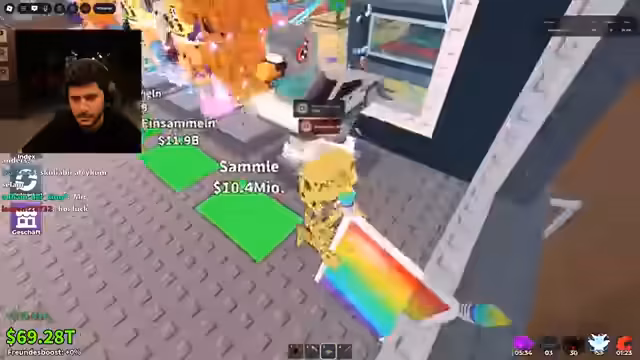 00:00:59Der Stream beginnt mit einer lauten Begrüßung. Der Fokus liegt auf dem Roblox-Spiel 'Admin Abuse', in das der Streamer sich einklinken möchte. Er schildert anfangs Verwirrung, weil er die Verbindung verpasst hat und technische Schwierigkeiten mit den Lichtern im Hintergrund hat. Der Streamer betont die Bedeutung von Roblox als 'wichtigste App aller Zeiten' und muss es zuerst auf seinem PC installieren, bevor das Spiel beginnen kann.