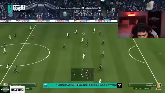 00:31:06Der Streamer beginnt mit dem Aufbau seines Teams und kauft den ersten Spieler, einen Verteidiger, der gleichzeitig Trainer ist. Er erklärt seine Entscheidung und versieht den Spieler mit einem Shadow-Chemie-Stil. Es werden erste Ziele im Spiel erreicht und abgeholt. Der Streamer öffnet weitere Packs und tätigt Trades. Er gibt einem Zuschauer einen Tipp für einen Jubel beim Fußballspiel. Es wird über Pharoahs Verhalten beim Ziehen von Spielern diskutiert. Der Streamer zieht Poggy und schlägt eine Evolution für ihn vor. Es werden Wetten mit der Community abgeschlossen, z.B. 10 Gift-Subs bei einem Icon-Pull in den nächsten 50 Packs oder 5 Gift-Subs, wenn Maradona gezogen wird. Der Streamer kauft weitere Spieler, basierend auf den Empfehlungen seines "Vogels" Ahmed, und bietet auf einige Spieler, um deren Wert zu steigern.