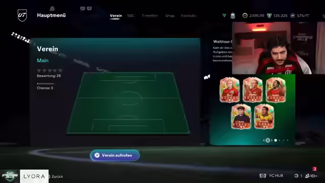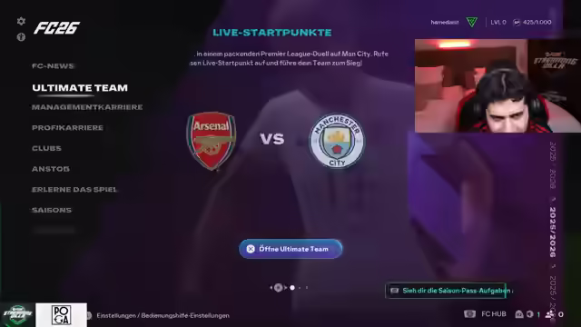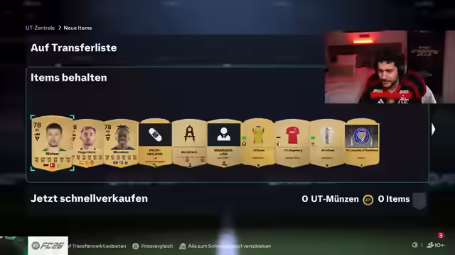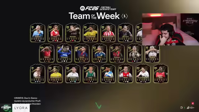 00:02:25Der Stream startet mit dem Fokus auf EAFC 26, inklusive Pack Openings mit aufgeladenem Guthaben. Es wird ein Plan erstellt, um weitere Inhalte in den Stream einzubauen. Der Streamer betont, dass der Schwerpunkt auf EAFC liegt, da er sich in einer Villa befindet und das Spiel gemeinsam mit anderen genießen möchte. Es wird eine neue Internetleitung genutzt, und es kann zu Problemen kommen. Es wird ein RTG (Road to Glory) gestartet. Multistreaming ist verboten, daher wird nur auf Twitch gestreamt. Es wird auf ein Video reagiert, entweder der krasseste Bankraub Deutschlands oder gruselige Simpsons-Vorhersagen. Nach dem Intro werden 3.000 Euro in FC 26 investiert, um zu sehen, was man ziehen kann. Es werden die besten Packs der letzten zwei Tage gezeigt und Investitionen off-stream erwähnt, die Gewinne brachten. Der Plan für den Stream umfasst das Öffnen von Packs im Wert von 3.000 Euro, Drafts, um das Maximum herauszuholen, und den Bau des finalen Teams.