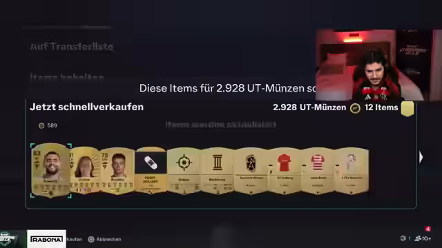10:17:19Es wird die Frustration über Null Siege und das Unvermögen, das Spiel zu genießen, zum Ausdruck gebracht. Der Fokus soll wieder auf Pack Openings verlagert werden. Es wird über das Ziehen von Mbappé und die damit verbundenen Versprechen diskutiert. Des Weiteren werden gezogene Spieler bewertet und es wird über die Häufigkeit von Walkouts gesprochen. Es wird der Alkoholkonsum während des Spielens thematisiert, wobei Sydney alle 50 Subs ein Bier trinken soll. Abschließend wird die Schwierigkeit des Spiels beklagt und der Rücktritt vom Spiel in Erwägung gezogen. Es wird festgestellt, dass man im Alter schlechter im Spiel wird.