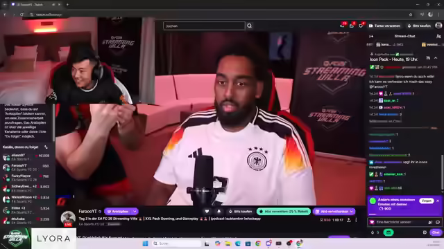 Hamedloco startet seinen EAFC 26-Stream mit dem Öffnen von Packs im Wert von 3.000 Euro und plant den Aufbau eines starken Teams. Er interagiert mit dem Chat, tauscht Trading-Strategien aus und teilt Anekdoten aus seinem Leben. Der Streamer kündigt Wetten mit der Community an und bespricht die Thumbnail-Gestaltung seiner Videos. Der Stream beinhaltet auch Teamaufbau, Diskussionen über Freundschaften und Gerüche in der Villa.