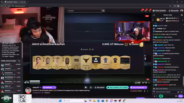 01:42:12Die Streamer starten einen Pack-Battle-Wettbewerb, bei dem jeder Teilnehmer innerhalb von 40 Minuten so viele FIFA-Packs wie möglich öffnen und der mit dem geringsten Marktwert der gezogenen Spieler verliert. Der Preis jedes Spielers wird genau dokumentiert und analysiert, wobei Streamer versuchen, durch schnöpes Updates ihre Chancen zu verbessern.