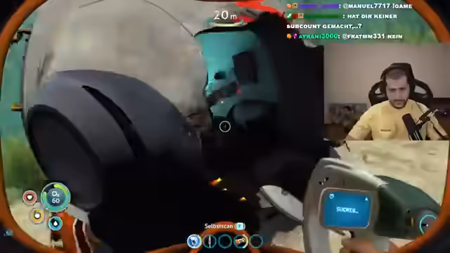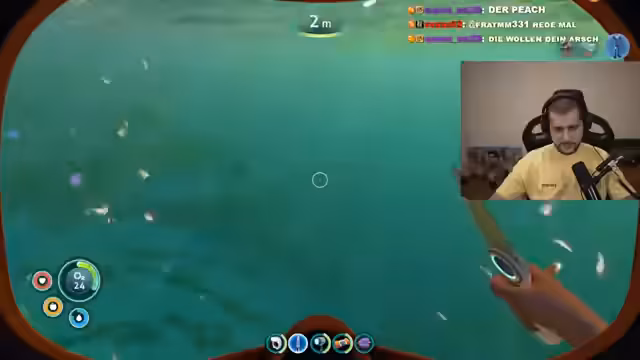 01:51:02Unter der Wasseroberfläche angekommen, stellt der Streamer fest, wie gruselig und fremd die Umgebung ist. Er ist anfangs verunsichert und versucht, das Wrack seines Schiffes zu finden, wird aber durch seltsame Geräusche und die Anwesenheit fremder Kreatüren abgelenkt. Er beginnt damit, Ressourcen wie Metallschrott und Edelsteine einzusammeln, stößt dabei aber auch auf bizarre Tiere wie eine Lobblase, die ihm Angst einflößt. Sein Inventar ist auf Anfänger beschränkt, und er muss lernen, sich in der gefährlichen Umgebung zurechtzufinden, während er gleichzeitig Hunger und Durst bekämpft.