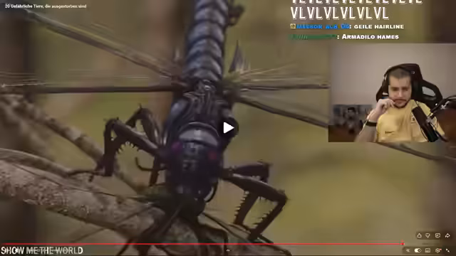 01:36:20Der Streamer stellt sich die Frage, wie Menschen heutige Insekte wie Tausendfüßler wahrnehmen, wenn sie seit jeher existieren. Die Vorstellung, in einer Zeit zu leben, in der Arthropleura, ein gigantischer Tausendfüßler, der bis zu drei Meter lang wurde, auf der Erde umherzog, erscheint ihm erschreckend. Dieses größte wirbellose Tier aller Zeiten ernährte sich wahrscheinlich von Pflanzen, verteidigte sich aber mit giftigen Substanzen. Das Thema wird mit Meganeura, dem größten fliegenden Insekt aller Zeiten mit einer Flügelspannweite von über 60 Zentimetern, fortgesetzt, das vor 300 Millionen Jahren Jagd auf kleine Amphibien und Eidechsen machte.