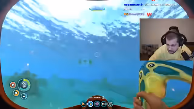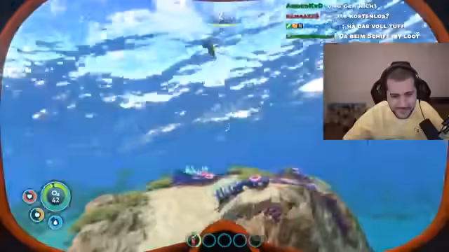 01:43:58Nach der eingängigen Diskussion über urzeitliche Kreaturen beginnt der Streamer mit dem Spielen von Subnautica. Er startet ein neues Überlebens-Spiel, nachdem sein Raumschiff explodiert ist und er sich mit einer Gehirnerschütterung in seiner Rettungskapsel wiederfindet. Sein Ziel ist es, das Wrack des Schiffes zu erreichen, wobei ihm die ersten Schritte auf dem fremden Planeten noch unklar sind. Schnell stellt er fest, dass er auf dem Meeresgrund auf Ressourcen angewiesen ist und seine Haupteinfahrtsgefahr das knapp werdende Sauerstoffvorräte sind.
