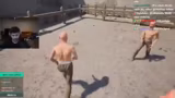 08:25:08Der Fokus liegt weiterhin auf dem Kampf gegen die übermächtige Figur 'Grete'. Der Streamer ist frustriert über ihre Stärke und beschreibt, wie leicht er von ihr besiegt wird. Er passt seine Taktik an, indem er versucht, sie mit Gegenständen wie Barhockern und Stühlen anzugreifen. Trotzdem gelingt es ihm nicht, Grete zu besiegen, was ihn sehr verärgert und demotiviert.