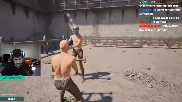 11:32:31Der Streamer analysiert seine Niederlagen und erkennt Mängel in seiner Taktik. Er hinterfragt die Wahl der Waffe, insbesondere den Speer, da dieser kaum Schaden anrichten kann. Stattdessen erwägt er den Einsatz einer Axt, die vielleicht effektiver wäre. Bei den Kämpfen zeigt er Unsicherheit über die richtige Vorgehensweise, insbesondere beim Ausweichen und der Abwehr von Angriffen. Die Verwirrung über die Spielmechanik ist deutlich spürbar.