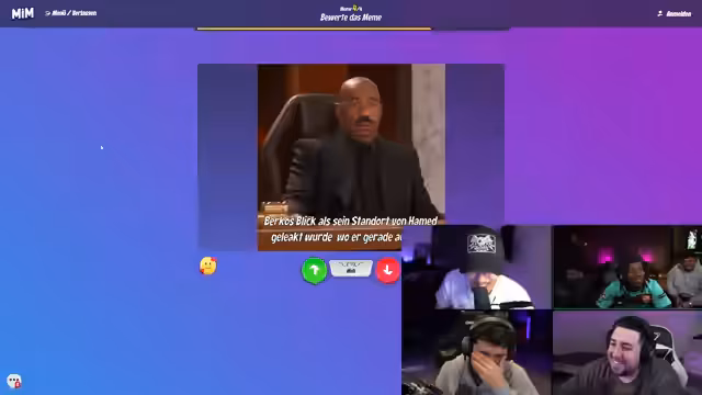 05:41:34Die Meme-Runde begann mit viel Gelächter und kreativen Beiträgen der Teilnehmer. Es gab einige technische Schwierigkeiten, die jedoch schnell behoben wurden, um das Spielerlebnis nicht zu beeinträchtigen. Die Teilnehmer wählten humorvolle Memes aus, die oft auf Insider-Witzen oder aktuellen Ereignissen basierten, wie zum Beispiel der Hack von Pharoahs Kanal. Die Stimmung war ausgelassen, und die Witze reichten von harmlosen Neckereien bis zu bissigen Kommentaren. Die Interaktion zwischen den Teilnehmern war lebhaft, und es wurde viel gelacht, während sie versuchten, die besten Memes zu erstellen und zu bewerten. Die Runde endete mit einer Diskussion über die Punktevergabe und die Möglichkeit, weitere Runden mit Zuschauern zu spielen.