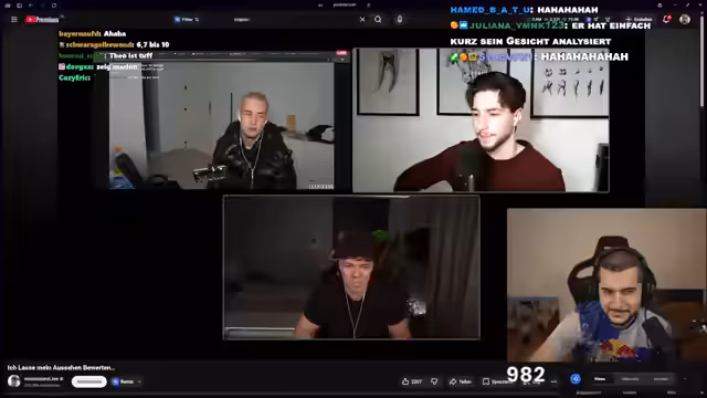 01:14:56Der Chat wird von mehreren respektlosen und provokanten Kommentaren überschwemmt. Ein Nutzer macht einen Witz über Hameds verstorbene Hund, was Hamed wütend und verletzt zurückweist. Es kommt auch zu einem Streit über die Mitgliedschaft bei einer Gang und beleidigende Kommentare über die Mutter eines anderen Nutzers. Hamed fordert die Nutzer auf, solche respektlosen Witze zu unterlassen.