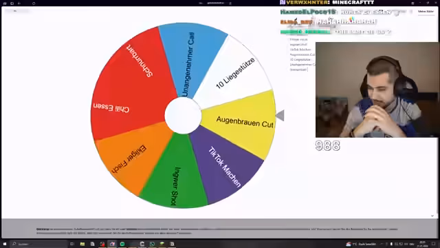01:25:00Für ein neues Spiel namens 'Shawarma Kiosk' wird ein Pechrad mit verschiedenen Bestrafungen eingeführt. Jeder Fehler, den Hamed beim Erkennen von Kunden macht, führt zum Dreh des Rades und einer der straffenenden Aktionen. Dazu gehören unangenehme Aufgaben wie Chili oder ekliger Fisch essen, ein Augenbrauen-Cut, das Erstellen eines TikToks oder das Spielen von 'Red Dead Redemption 2'.