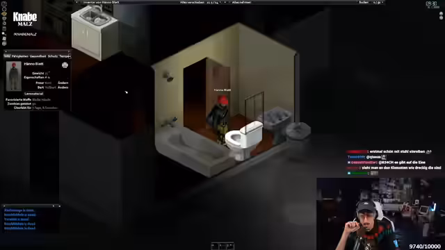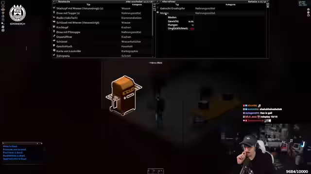 01:39:52Der Streamer wechselte das Spiel zu Project Zomboid. Aufgrund eines Serverausfalls waren Strom und Wasser nicht mehr verfügbar, was die dringendsten Probleme darstellte. Das Hauptziel war, Wasser zu beschaffen, weshalb Pläne für den Bau einer Regentonne oder das Aufstellen von Töpfen als Wasserfänger geschmiedet wurden. Die Schwierigkeiten des Spiels, insbesondere bei der Bedienung und der Inventarverwaltung, wurden thematisiert. Der Streamer erkundete die Umgebung, um Gegenstände wie Töpfe zu finden und sein Überleben zu sichern, während der Server weiterhin ohne ihn weiterlief.