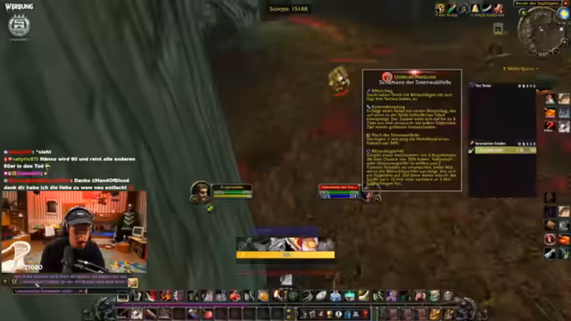 06:34:24Der Streamer beklagt, dass er die World Buffs vergessen hat, was seine Gruppe benachteiligt. Es wird eine Diskussion über die Gilde und deren Mitglieder geführt, wobei der Streamer betont, dass die anderen Buffs nun nicht mehr wichtig sind. Es folgt eine Warnung vor einem Fluch, der den Streamer angeblich immer im Level 35 oder 36 tötet. Um dies zu umgehen, plant er, kurz vor dem Level-Up aus der Gruppe zu treten, um einen Ruhestein nutzen zu können. Seine Hauptaufgabe ist es, einen Level-58-Gegner zu töten, was seine volle Konzentration erfordert.