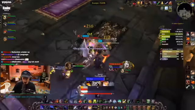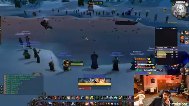 04:34:17Die Gruppe konfrontiert den Boss 'Mograine', dessen Kampf spezielle Taktiken wie 'Pre-Shielding' und kritisches 'Kiting' erfordert. Der Streamer führt als Anführer den Call und verteilt Rollen, um die weitreichenden Angriffe des Bosses zu managen. Der Job des Warlocks wird als extrem wertvoll für die Gilde hervorgehoben, insbesondere für das Portieren von Mitgliedern, was eine große Hilfe für die Community darstellt und den Teamgeist stärkt.