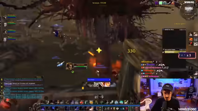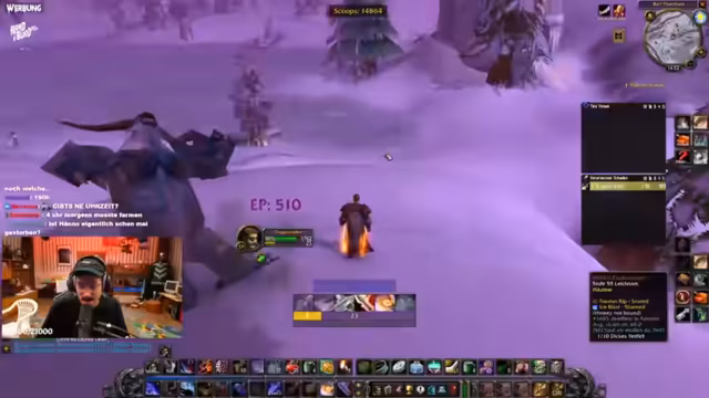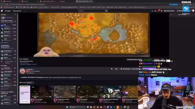 03:14:27Es wird eine Diskussion über die Gefahren der Zusammenarbeit (Leashing) in World of Warcraft Hardcore geführt. Viele Spieler sterben, weil sie die Mechanismen nicht verstehen, die bestimmen, wie Mobs agieren, wenn Spieler helfen. Der 'Spaghetti Code' des Spiels erschwert die Einschätzung der Aggro-Range erheblich. Ein Chat-Filter-Problem wird angesprochen, das die Kommunikation zwischen dem Streamer und einem Zuschauer namens Chris behindert und zu technischen Unterbrechungen führt.