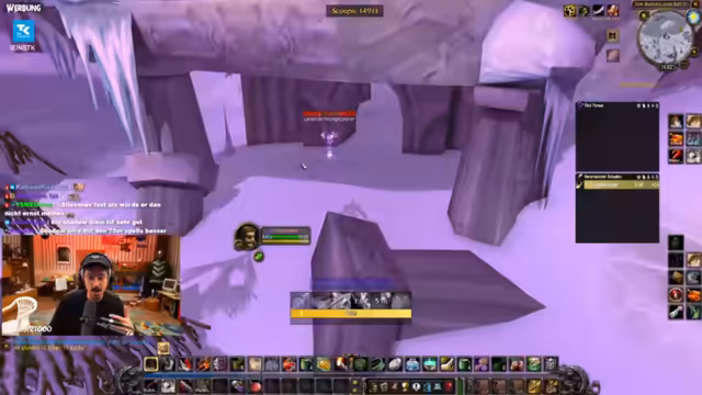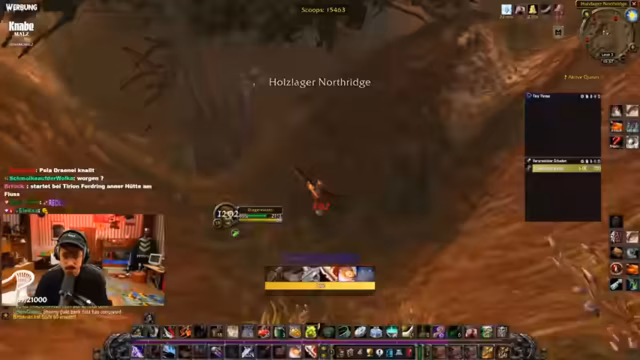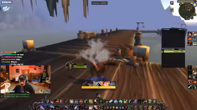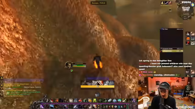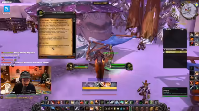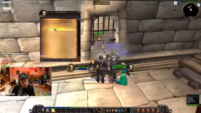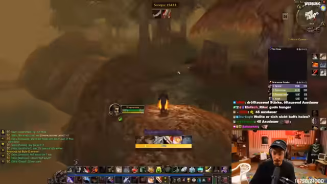 06:46:02Der Streamer erklärt seine Entscheidung, auf der Allianzseite zu spielen. Dies ist eine Fraktionswahl mit seinen Kumpels von einem Privatserver. Er sieht sich nicht als Hype-Opfer, sondern als WoW-Fan. Er berichtet über den Gilden-Invite und äußert sich bewundernd über den Charakter Old Shepard. Es folgt eine Diskussion über eine knifflige Begleitquest, die er möglicherweise erst auf 60 macht. Im Chat wird ein Gildenmitglied als "Draenei Zweihand Enhancer" identifiziert, was den Streamer bestätigt.
