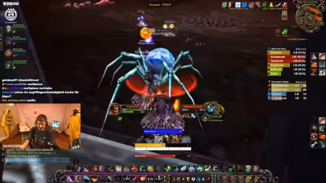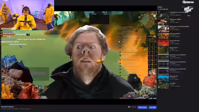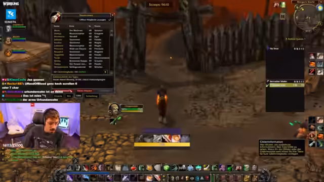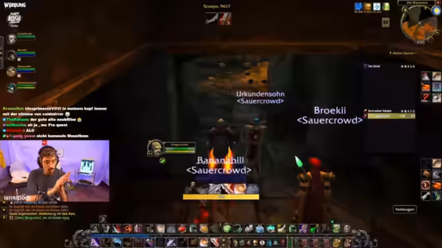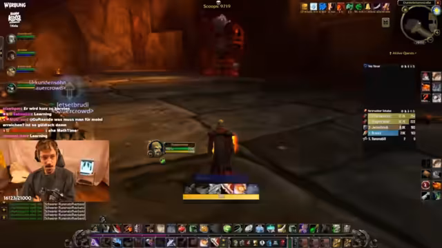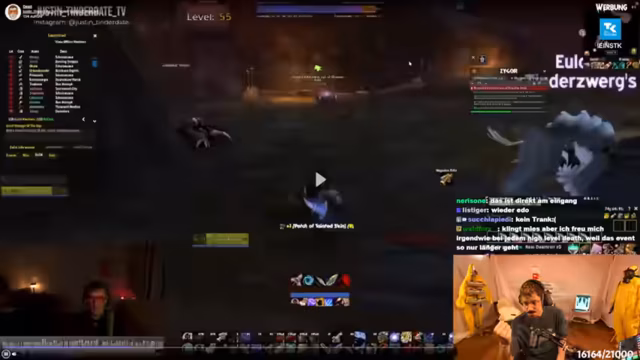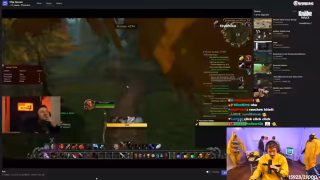 09:12:36Die Gruppe beschließt, den Hundemeister zu besuchen, es kommt aber zu Verwirrung über den genauen Weg. Der Streamer bemerkt, dass jemand ohne Bescheid AFK ist, was den Fortschritt verzögert. Plötzlich bricht der Streamer seinen Plan ab, weil sein Akku leer ist und er das Gefühl hat, dass die Rolle des Gildenleiters keine Vorteile bringt. Es folgen technische Probleme wie ein stürmischer Chat und das Auftreten unerwarteter Mob-Packs. Die Stimmung im Stream wird angespannt, als der Streamer versucht, das Gameplay fortzusetzen, aber von diversen Unterbrechungen abgelenkt wird.