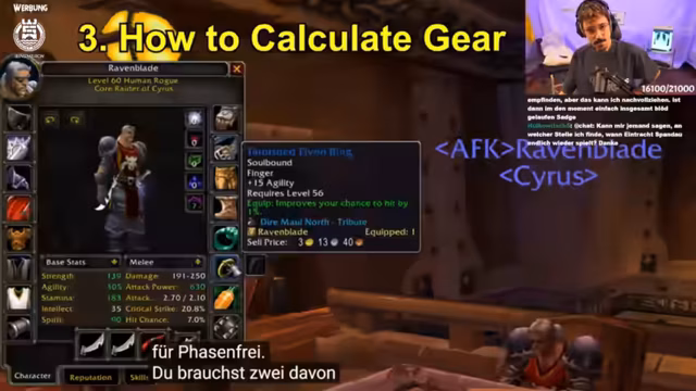 05:22:56Es wird eine detaillierte Analyse von Spieler-Stats vorgenommen, um den relativen Wert von z.B. Kritischer Trefferchance (Crit) und Trefferchance (Hit) zu bestimmen. Anhand eines Beispiels wird erklärt, wie man diese Werte in eine gemeinsame Einheit, die Angriffskraft (Attack Power), umrechnet, um Gegenstände besser vergleichen zu können. Dabei wird herausgearbeitet, dass 1% Crit Chance einem Wert von 23 Angriffskraft entspricht, was für die Ausrüstungsplanung im späteren Spielverlauf entscheidend ist.