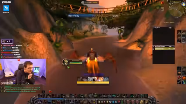11:01:36Der Streamer befindet sich in der Klassenhalle und plant seine nächsten Schritte. Er wünscht sich einen Magier für einen Port nach Darnassus, was jedoch nicht möglich ist. Nach einer kurzen Diskussion im Chat entscheidet er sich, das Gebiet Un'Goro zu besuchen, da es aufgrund der vielen Kill- und Sammelquests sowie der Erfahrungspunkte als sehr effizient gilt. Er kündigt an, einige quests zu canceln, um Platz zu schaffen, und bemerkt, dass der Helm, den er gerade erhalten hat, die Notwendigkeit einer Schurkenquest verringert.