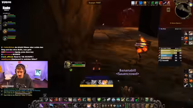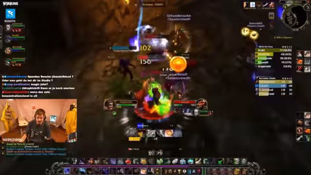 00:19:40Ein Fokus liegt auf den Problemen innerhalb der WoW-Gruppe, insbesondere bei einem Gildenmitglied namens Sun Glitters, die trotz Warnungen in gefährliche Situationen gerät. Es wird über die Schwierigkeiten bei der Koordination gesprochen und die Notwendigkeit von Calls betont. Der Streamer ist bemüht, die Hardcore-Herausforderung zu meistern, wobei die Gruppendynamik sowohl eine Hilfe als auch eine Belastung darstellt.