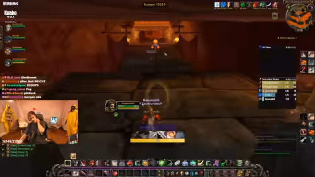 08:29:38Die Gruppe diskutiert über die Ausrüstung für den bevorstehenden Kampf gegen die Brandwachen. Es geht darum, Feuerresistenz-Gear zu verwenden, da es für bestimmte Phasen im Dungeon essentiell ist. Der Streamer empfiehlt, sich auf solche Ausrüstungsteile vorzubereiten, um den Schaden besser überleben zu können. Anschließend wird der Fortschritt zur nächsten Gegnergruppe, den Brandwachenzerstörern, angekündigt. Ein kurzer Spaß über den Namen 'Ziefieks' unterbricht den ernsten Ton. Der Ton bleibt sachlich und auf den Kampf fokussiert, als der Streamer den Weg für den nächsten Mob freimacht.