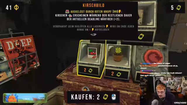 02:38:13Der Streamer entscheidet sich, zunächst auf Siebenden zu konzentrieren, da dies das Ziel des aktuellen Runs ist. Da er unsicher ist, ob er die passenden Glücksbringer dafür hat, erkundigt er sich im Chat nach deren Freischaltung. Er erhält die Information, dass dies durch das Spielen möglich ist. Daraufhin kauft er zwei grundlegende Glücksbringer im Shop: 'grüne Paprika', ein Allrounder, und eine rote Paprika, die speziell auf Siebenden ausgerichtet ist. Er zahlt seine Schulden und beginnt mit dem Zocken.