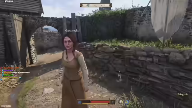 06:33:05Es wird ein neuer Rang erreicht (Rang 8), wodurch die Möglichkeit freigeschaltet wird, einen Rüstungsschmied einzustellen. Magdalena verkauft plötzlich mehr, aber immer noch zu wenig. Es wird vermutet, dass März zu viel an diesem DLC mitgetestet hat. Es wird sich darüber beschwert, dass Magdalena herumballert, während der Charakter Eier transportieren muss. Es wird festgestellt, dass die Aufträge kein Geld einbringen. Es wird Gold benötigt, um einen Rüstungsschmied einzustellen. Es wird eine Affäre mit einer verheirateten Frau geführt, die dem Charakter Geld für den Neuanstrich der Kirche abschwatzen will. Der Charakter lehnt dies jedoch ab. Es wird festgestellt, dass die Kirche gestrichen werden sollte, aber nicht mit dem Geld des Charakters.