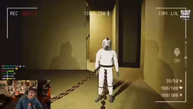 02:15:20Nach den sportlichen Prüfungen wechselt der Fokus zu einem PC-Spiel. Der Streamer berichtet von technischen Problemen mit einem Knetmaschinen-Produkt und spielt dessen Explodierbarkeit herunter. Anschließend startet er ein Horrorspiel, an dem er mit Gästen Vasily, Gnu und Sterzig teilnimmt. Es wird die Funktionsweise der Kette der Charaktere erklärt, die eine zentrale Spielmechanik darstellt und die Gruppe physisch verbindet.