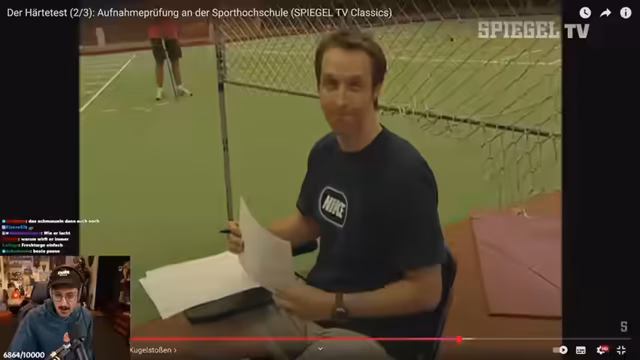 01:26:40Der Hauptinhalt des Streams ist die Live-Reaktion auf Teil zwei einer Dokumentation über die Sporthochschule. Der Streamer kommentiert die gezeigten Sportler und deren Leistungen oft humorvoll und kritisch. Er analysiert die fußballerischen Fähigkeiten der Probanden, vergleicht sie mit Profis und macht sich über verschiedene Eigenarten und den Auftritt der Teilnehmer lustig, wobei er sich selbst in die Rolle eines DFB-Trainers versetzt.