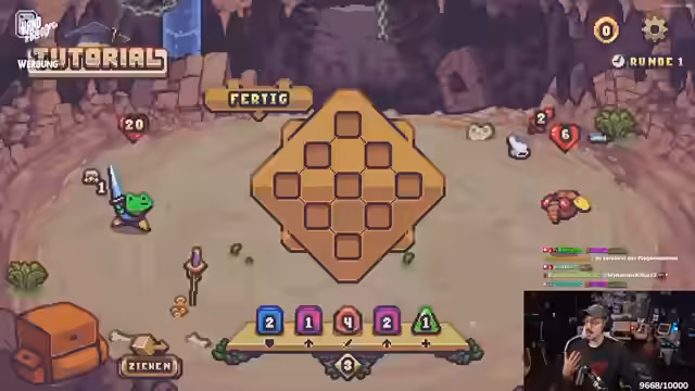 01:10:44Der Streamer diskutiert verschiedene Würfeloptionen und deren Auswirkungen auf sein Deck. Er entscheidet sich für einen Blockwürfel, um Standard-Blockwürfel zu ersetzen und sein Deck zu verbessern. Erwägt Gelände- oder Streuangriffswürfel und entdeckt ein Relikt, das sämtlichen Schaden aus Runde 1 auf 0 reduziert. Er erhöht den Geländefeldwürfel und bemerkt, dass er bei einer 0 nochmal würfeln kann. Er muss sein Deck ausmisten und schlechte Würfel entfernen. Er heilt sich um 25 und würfelt einen normalen Falt, der 2x0 trifft, was er als ungewöhnlich empfindet. Er vermutet einen Anti-Streamer-Launcher, da er Doppel-Zero gewürfelt hat und glaubt, dass er mehr Schaden als normale Spieler machen sollte. Er äußert Unzufriedenheit mit dem Client und vermutet, dass er den falschen Key erhalten hat. Er blockt einen Angriff und fügt Gegnern Schaden zu, wobei er Dasfi schnell besiegen möchte. Er erhält einen Pulli und wird zu Freibier auf der Gamescom eingeladen, kann aber nicht kommen. Er muss einen bestimmten Zug machen, um Schaden zu vermeiden, da ein Gegner gebufft wird. Er erhält ein Hotfix und besiegt einen Gegner. Er geht zum Shop, da er 10 Mark hat und volles Leben. Er verleiht einem Würfel die Eigenschaft Hohl, reduziert Energiekosten um eins, aber es können nur zwei Eigenschaften auf dem Würfel sein.