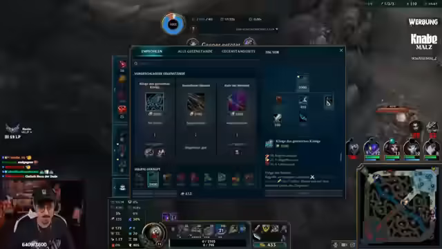 03:03:34Der Streamer fasst seine aktuelle League of Legends-Situation zusammen. Nach einer Phase intensiver Solo-Queue und Leak-Streams pausierte er aufgrund des Elden Ring DLCs. Sein Ziel ist es, ab Oktober Vollgas zu geben und wieder erfolgreich in das Spiel einzusteigen, um möglicherweise den Challenger-Rang zu erreichen. Er sucht dabei nach einem Weg, ohne Halbgare-Leistungen zu spielen und seine motivation aufrechtzuerhalten.