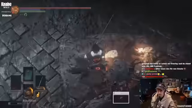 06:38:34Der Streamer kämpft gegen den Boss der Abyss-Watcher. Er erinnert sich an das Moveset aus einem früheren Let's Play, welches den Kampf erleichtert. Während des Kampfes kommt es zu kritischen Momenten, in denen es knapp um einen Game Over geht. Die Anpassung der Waffe wird in Erwägung gezogen, um der hohen Feuerresistenz des Bosses entgegenzuwirken, während Zuschauer Tipps vorschlagen.
