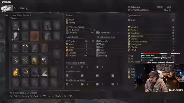 05:33:16Es entwickeln sich technische Fragen, insbesondere zur Anzeige von Ringen in der Spielversion des Nutzers, die bei anderen Zuschauern anders aussehen mag. Die Diskussion vertieft sich in Gameplay-Mechaniken, die für Soulkeeper-Runs entscheidend sind, wie z.B. das zentrale Wissen um die Schadensarten von Waffen und der Nutzen bestimmter Ringe. Der Streamer zeigt sich beeindruckt von der Community-Analyse zu Schwachstellen der Gegner.