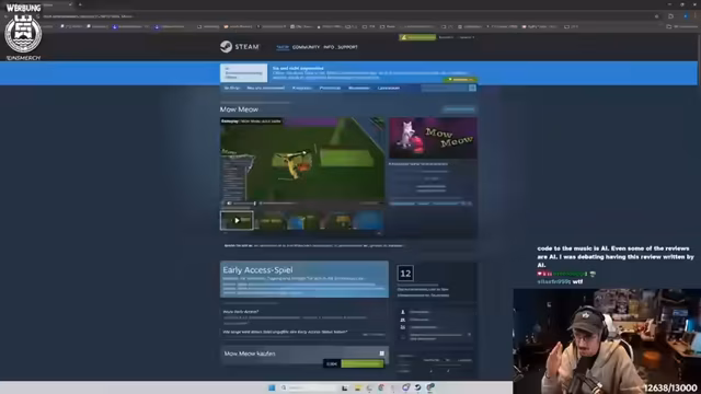 01:38:00Ein Fokus liegt auf der Analyse des Titels 'Battleground Battle Royale'. Der Streamer erkennt strategische Marketingbegriffe wie 'Battle Royale' und 'Team Deathmatch', was er als Versuch identifiziert, durch Suchmaschinenoptimierung Aufmerksamkeit zu erzielen. Er beurteilt das Gameplay des Trailers als 'scheiß' und unterstellt dem Entwickler, Bild-KI generiert zu haben, um den Aufwand zu minimieren. Weitere Spiele wie 'Toilet Battle' und 'Half-Sword' werden kurz angerissen, wobei Letzterer ihm für einen kurzen Moment gefällt, bevor er zu einer völligen Ablehnung übergeht.